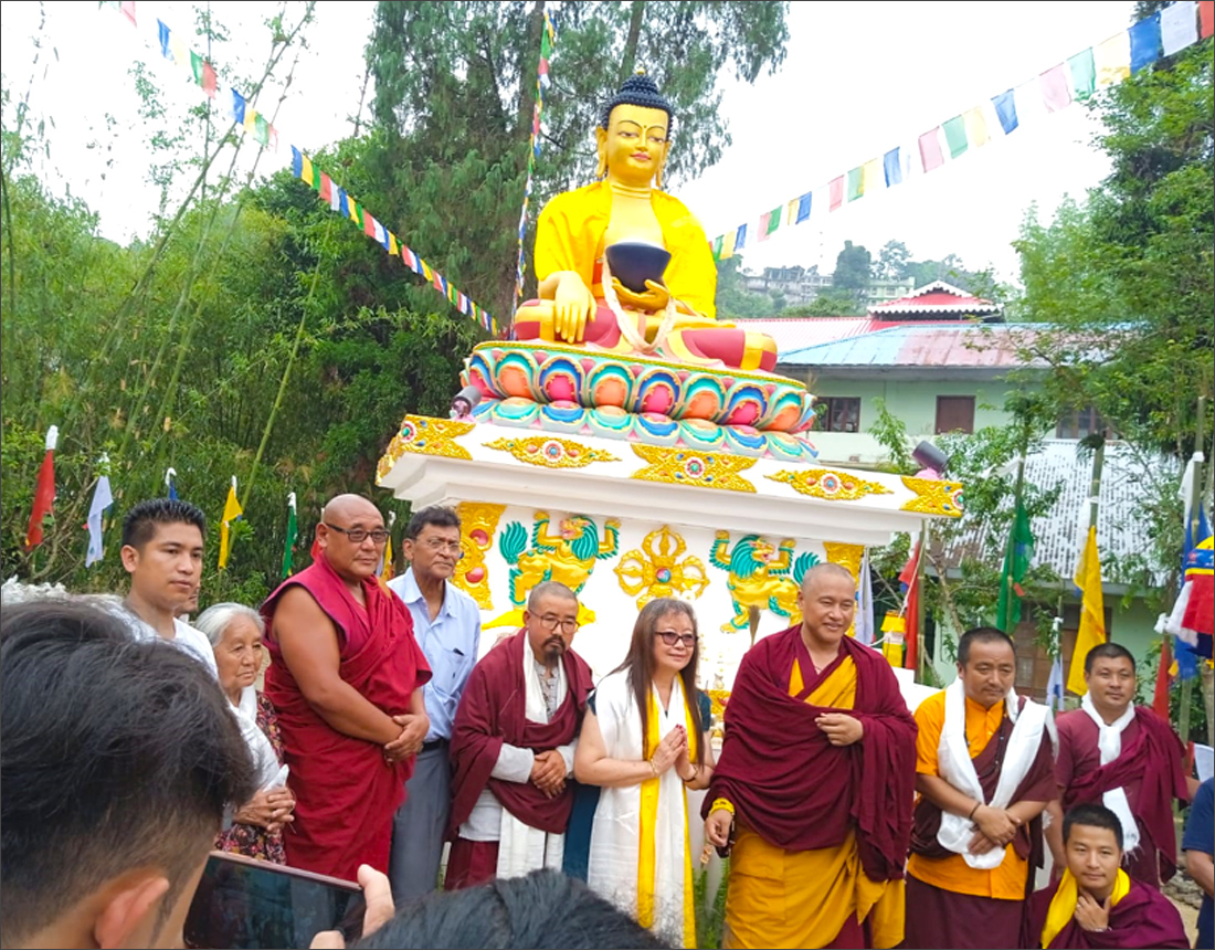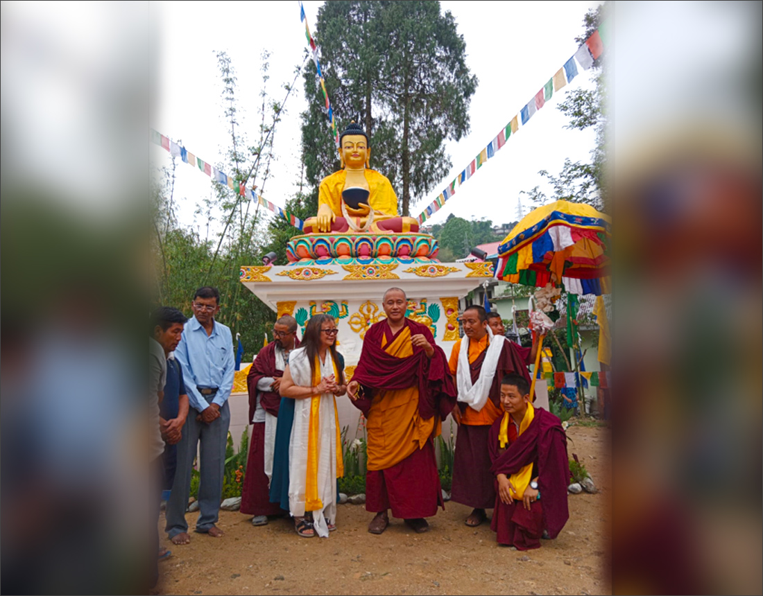 A few days prior to the inauguration of the Museum of Heritage at the Lepcha Gumba, another big event took place on the 16 May on the day of Buddha Purnima– the sanctification ceremony of the 8 feet Buddha statue installed by one of the well wishers of the Gumba -Ms Inkit Ruthnaswamy (nee Lepcha), The day long ceremony was held by Rinpoche Chokhor, Abbot, Tharpa Choling Monastery, Kalimpong. Devotees numbering more than 500 from far and near gathered for the ceremony and to welcome Rinpoche Chokhor. Lunch also funded by Ms Inkit was served to the attendees. The inauguration was covered by the local Kalimpong TV